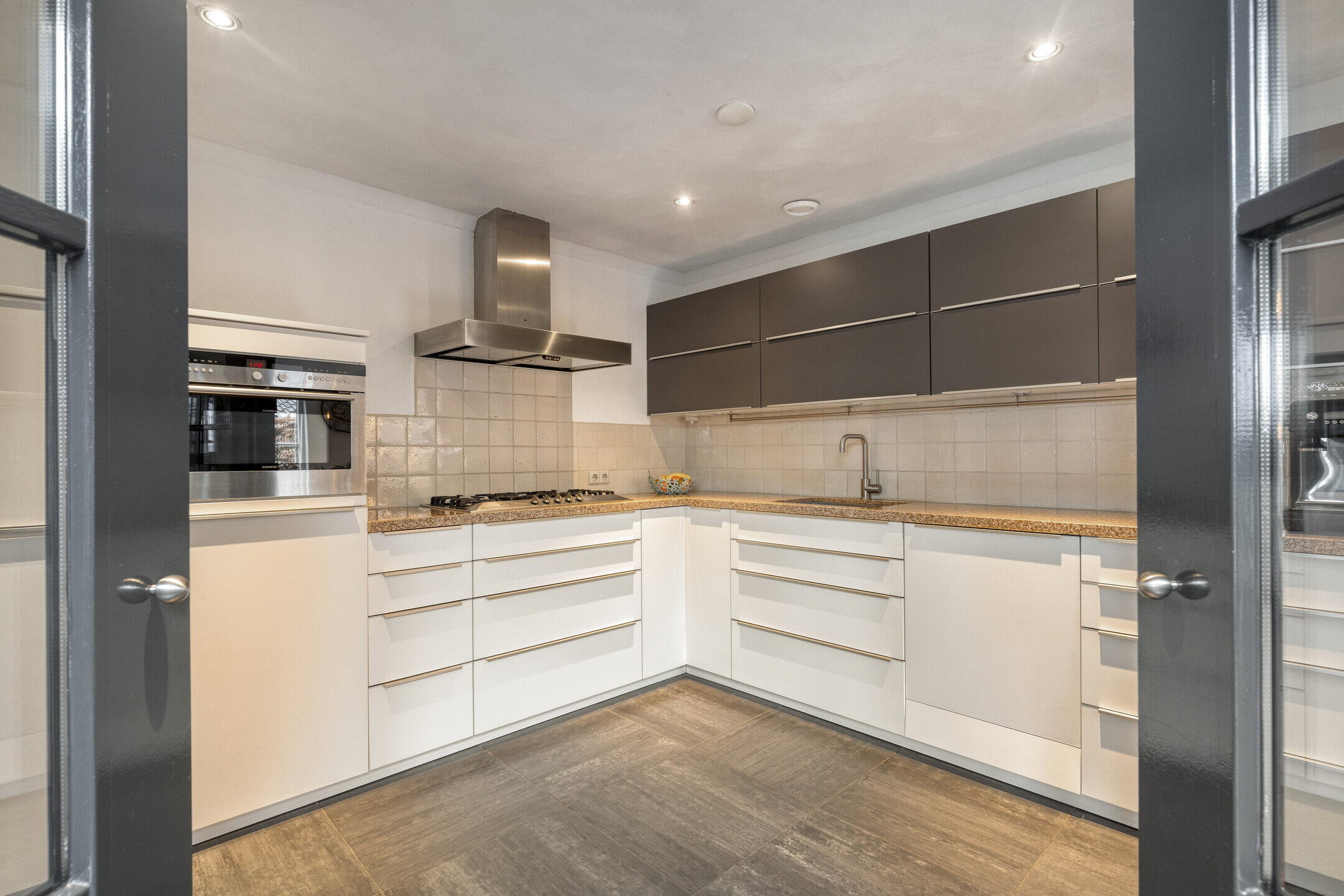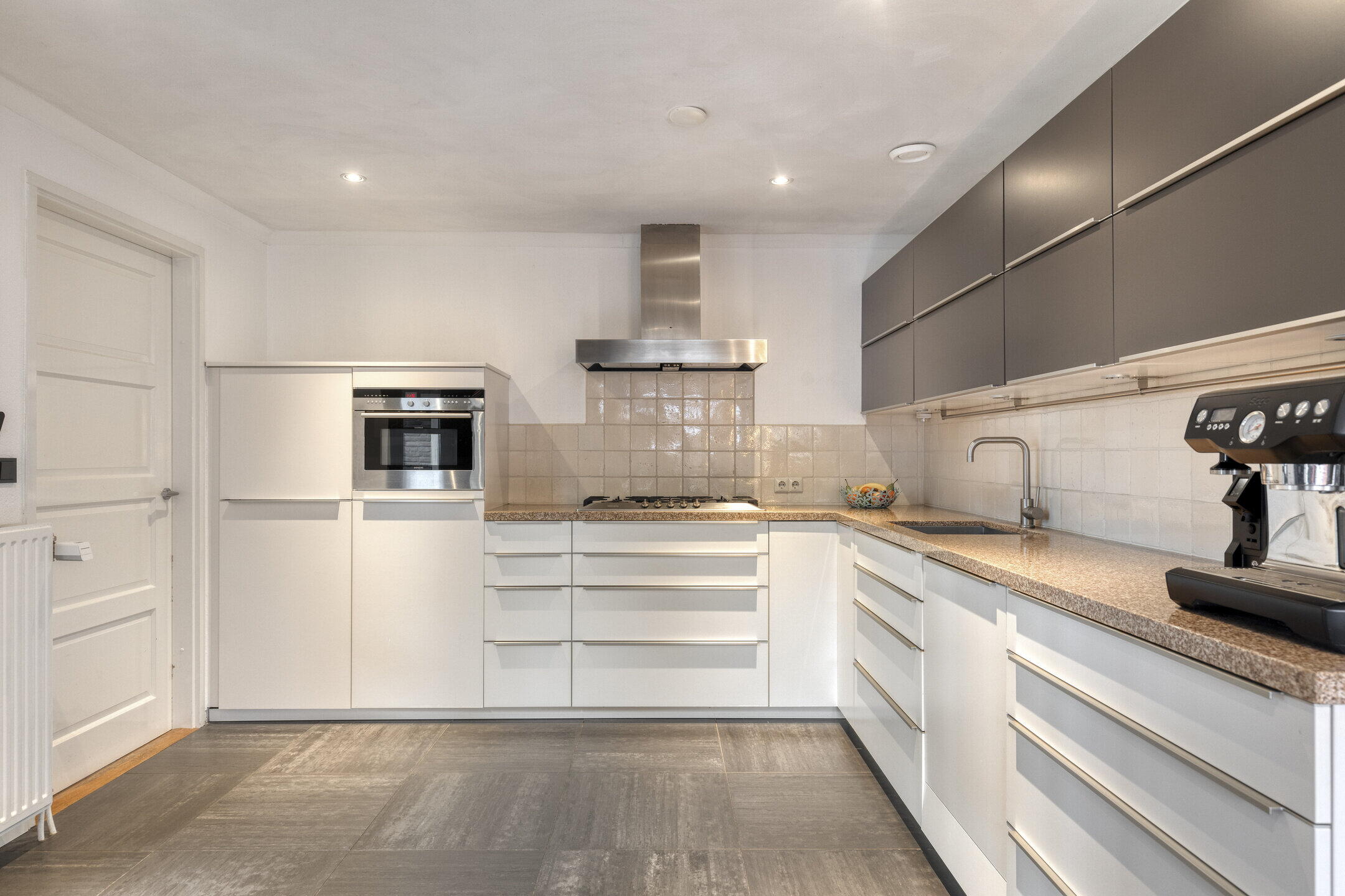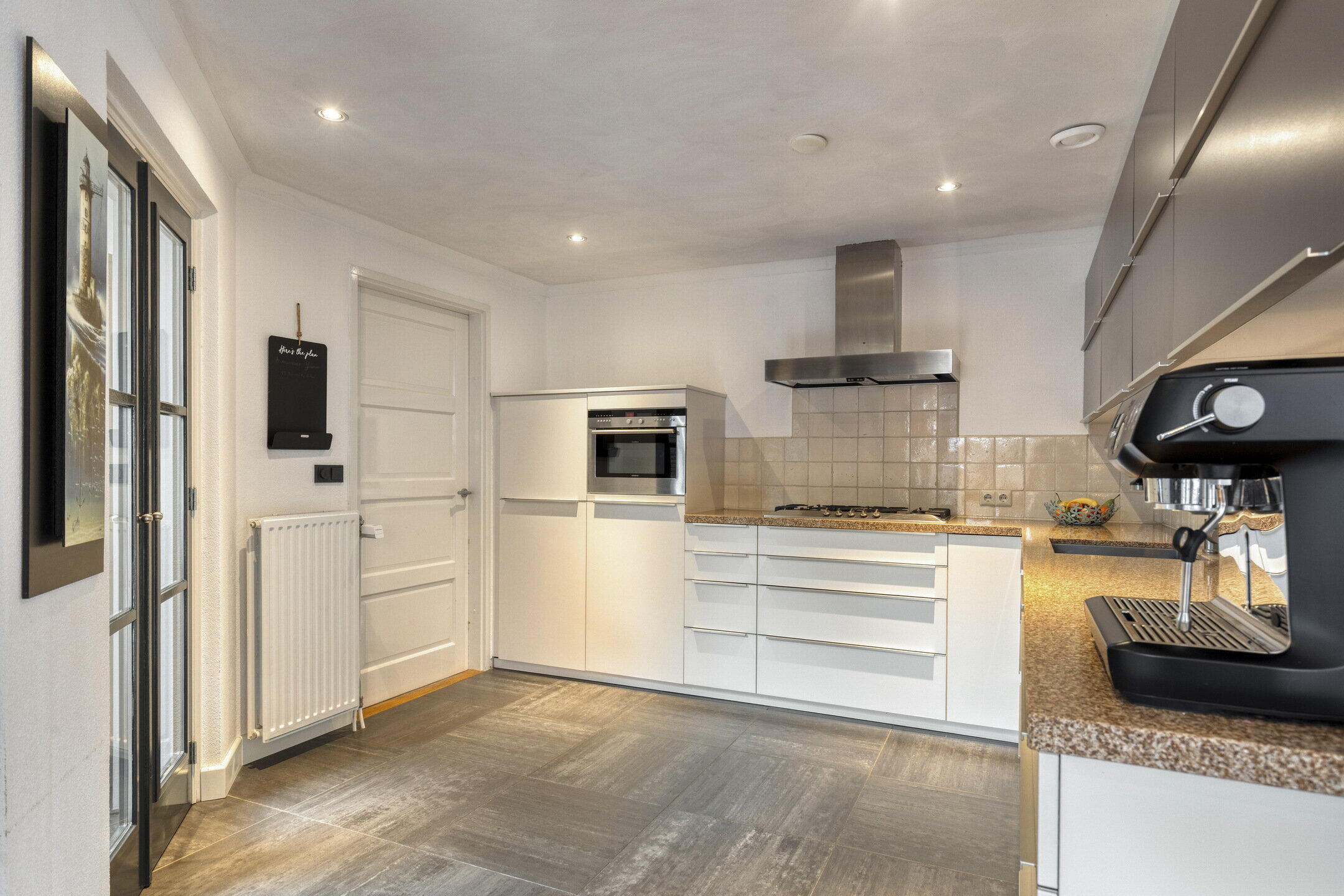 De keuken is uitgevoerd in een royale hoekopstelling en praktisch ingericht. Deze is voorzien van diverse inbouwapparatuur, waaronder een vaatwasser (2025), koelkast, combi-oven, afzuigkap en gaskookplaat.